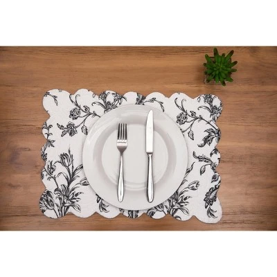 Bring a modern twist to any dining room with the Bleighton Black Tabletop from WILLIAMSBURG. Featuring classic quilting and an intricate black floral pattern, this tabletop is designed to provide an updated take on traditional style. Machine washable for easy care. Each piece of the Bleighton Black tabletop collection is reversible with two different designs makes it easy to mix, match and create new looks.