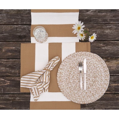 Make sure your warm-weather decor is always popping with the Cabana Stripes placemats and table runners that give your tabletop a cheery boost. Alternating between stripes of white and a happy pop of color makes these table linens perfect for summertime gatherings. With its casual vibes, it’s the ultimate way to brighten your summer.