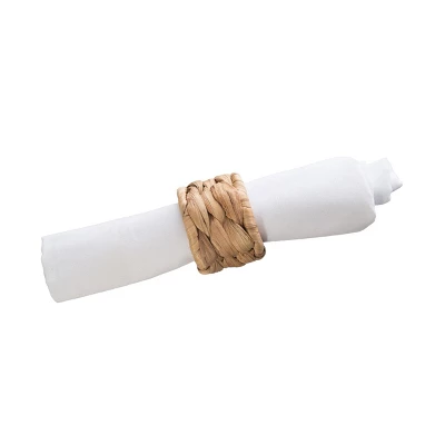 These napkin rings make a beautiful addition to any tabletop setting. Crafted from a combination of water hyacinth and iron, this napkin ring exudes rustic charm and timeless elegance. Its earthy materials and simple design make it the perfect complement to a variety of table linens and decor styles at home.