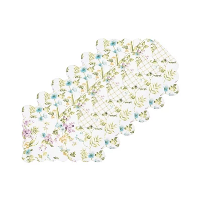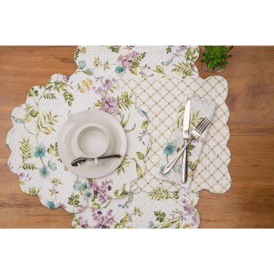 Embrace the beauty of spring all year round with the Carley quilted table linen collection and matching reversible napkin. The painterly flowers in a stunning array of blue, purple, and yellow on flourishing green stems evoke a sense of rejuvenation. For more styling options, these table linens reverse to a simple, yet charming yellow rosebud-style trellis pattern on a white background for more styling options. Love this look? Carley is also available as a bedding collection.