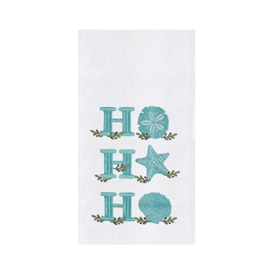 C&F Home HO HO HO Flour Sack Kitchen Towel is perfect for spreading the holiday spirit with a coastal twist. Featuring a soft blue text of the classic Christmas saying, this design replaces letters with seashells and starfish and decorates them at the bottom with our favorite Christmas botanical ornaments to create a creative and festive display.