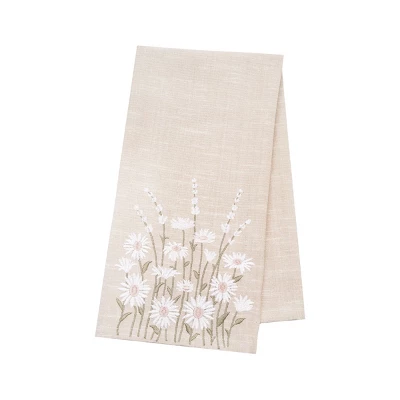 For an elegant kitchen towel with a neutral background, this embellished towel features delicate daisies blooming from the bottom and gracefully extending toward the top. This timeless floral display adds an elegant touch suitable for year-round decor. Stay with, and accompany us during our continued home décor magical ventures every season once again years after years.
