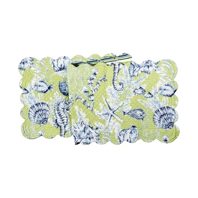 The Fenwick Isle tabletop collection makes it easy to bring touches of ocean waves and sun-drenched beaches into your home. With iconic shell, starfish and seahorse motifs, this soothing print is the perfect centerpiece to a modern coastal kitchen, breakfast nook or your favorite seaside vacation spot. Reverses to a subtle net design for even more coastal or nautical styling options.