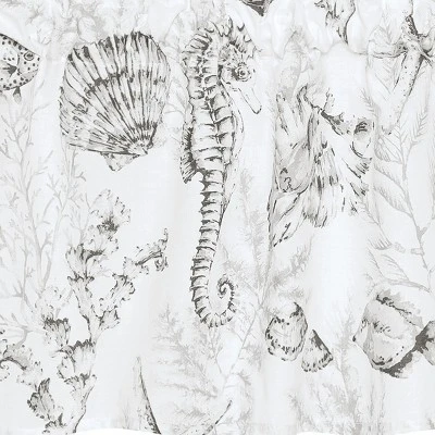 The Fenwick Isle Green ruffled valance makes it easy to bring touches of ocean waves and sun-drenched beaches into your home. With iconic shell, starfish and seahorse motifs, this dynamic green, blue and white print is the perfect accent for your modern coastal kitchen, breakfast nook or your favorite seaside vacation retreat. This ruffled unlined valance is light filtering with a 2-inch rod pocket and a 1-inch decorative header. Crafted of cotton, machine wash and tumble dry low for easy care. Love this pattern? Fenwick Isle Green is also available in our bedding and tabletop collections. Set includes 1 valances, each valance is 72″ wide, hanging rod not included.