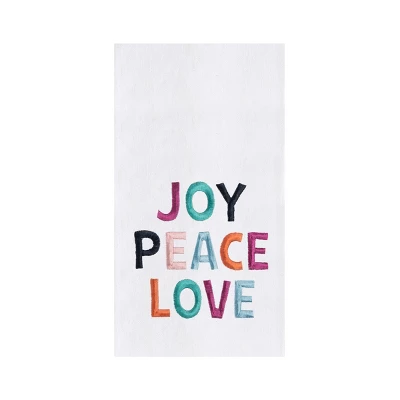 Bring joy, peace, and love into your kitchen with this flour sack kitchen towel. Made from cotton, bold block text in an array of colors will make doing the dishes a happy activity. Perfect for the holidays or everyday use. Stay with and accompany us during our continued home décor magical ventures every season years after years.