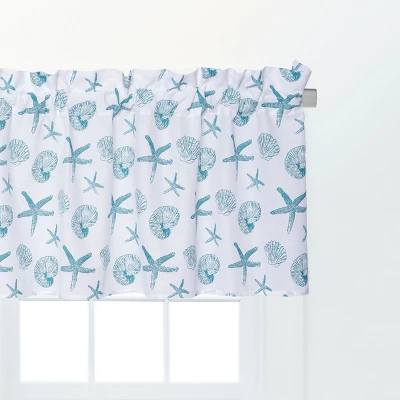 Let the Maris valance transform your home into a seaside paradise. Teal starfish and shell motifs with an illustrated look are dynamically arranged across this valance bringing a fresh and lively coastal feel. Marris is the perfect foundation upon which to build your vacation getaway style, and your everyday coastal look. Each valance measures 72 inches wide, with a two inch rod pocket and 1.5 inch decorative header. Crafted of cotton this unlined valance is machine washable for easy care.