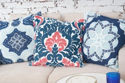 The Mary Pillows bloom with a floral medallion print, hand embellished details, and a vibrant color palette. Pair with the Christopher Pillows for a variety of intricate patterns in complimentary colorways.
