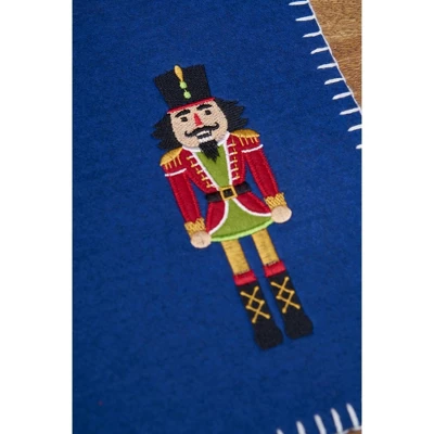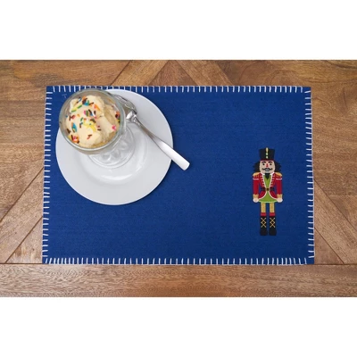 Nutcracker Felt Rectangle Placemat Set of 6 Christmas Holiday Solid Blue Embroidery