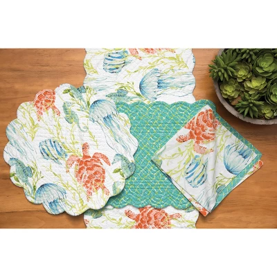 Take a vacation at Paradise Sound with this napkin. A vibrant watercolor design of blue, green and orange undersea creatures gives any kitchen or dining room a touch of tropical life.