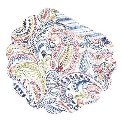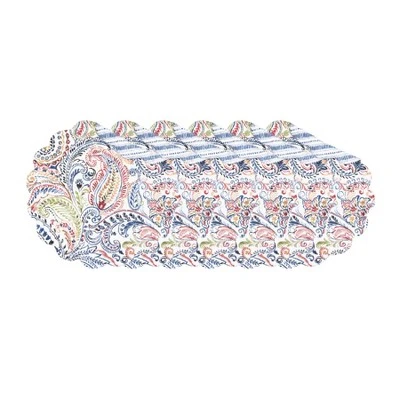 For a vibrant and stylish addition to any space, Payton Paisley table linens burst with a lively array of colors, including the matching reversible napkin. The captivating watercolor paisley design in blue, red, green, yellow, and white exudes energy and personality for a one-of-a-kind piece of art. Reverse to a charming watercolor stripe pattern created with a variety of playful dots and dashes in agreeable shades of blue for more styling options. Love this look? Payton Paisley is also available as a bedding collection.