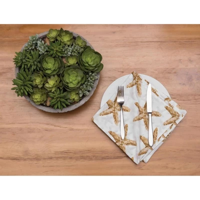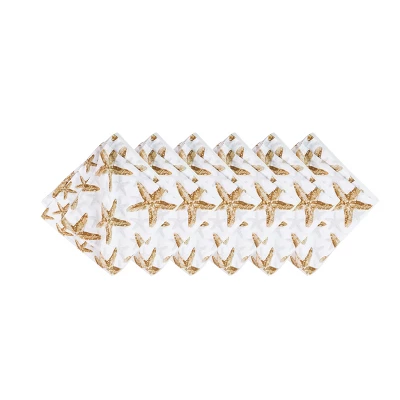 The Sandbridge Stars table linen collection brings the magic and romance of the sea to any kitchen. The simply stylish coastal starfish print of this reversible cotton napkin creates a relaxing beach vacation feel.