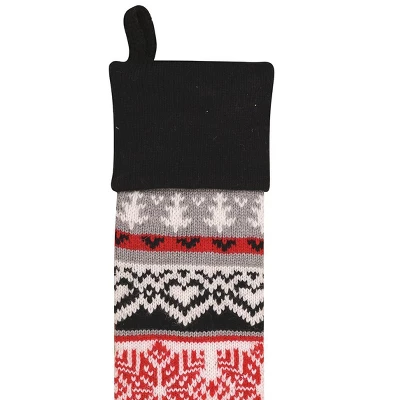 Create a cozy atmosphere in your home this Christmas with our Winter Gray collection. This beautifully knit stocking composed of red, gray and black patterns develop into a warm theme. Hearts, snowflakes and chevron make up the design and are finished off with a black cuff, toe and heel. Mix and match with our knit stocking collection for a complete holiday display.