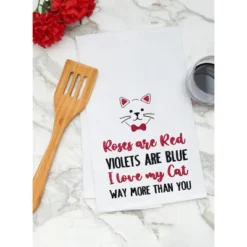 C&F Home Valentine’s Day “I Love My Cat” Whiskers Embroidered Flour Sack Kitchen Dishtowel