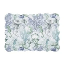 C&F Home Shoreline Waters Scalloped Placemats Set Of 6 Nautical Design, 13″ X 19″