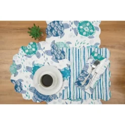 C&F Home Dockside Cotton Quilted Round Reversible Placemats Set Of 6, 17″